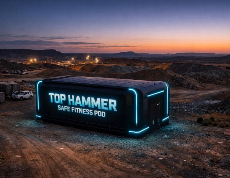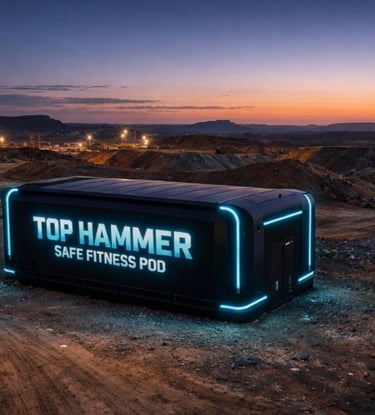 A portable, high-tech sanctuary designed specifically for remote mine sites. The Top Hammer Safe Fitness Pod isn't just a gym—it's a complete physical and mental recalibration station.