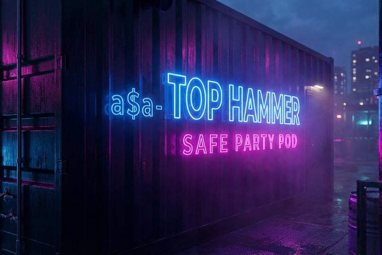 The Top Hammer spirit is simple: keep it real, keep it positive, and bring people together through movement, music, and shared energy. Everything we do — from the Safe Party Pod to our event packages — is designed to help people connect, feel alive, and enjoy themselves in a safe, uplifting environment.